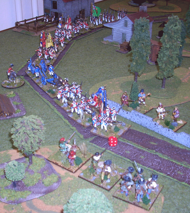 The Light Infantry continues to shase away Americam militia. The 4th Regiment of Foot to the right reciving heawy fire and Breakes...Not a good day for the British...