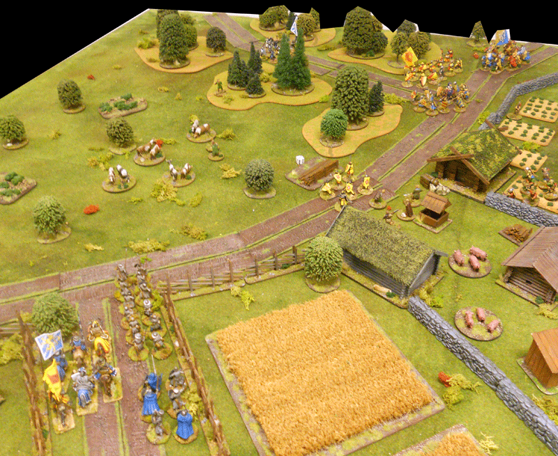 While the escorting Knights advanced along the road to engage the Bride Robbers, the Foot Serjants and the Bride started to move through the field...